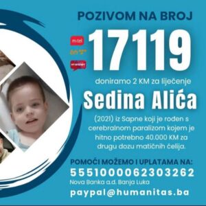 Maleni Sedin (4) je napravio prve korake: Ne dopustimo da prestane hodatiDječak Sedin Alić rođen je 2021. godine u Sapni, sa cerebralnom paralizom…04.08. u 12:20 / BiH, Vijesti Maleni Sedin (4) je napravio prve korake: Ne dopustimo da prestane hodati04.08. u 12:20 / BiH, Vijesti