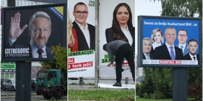 Za prijevremene izbore 2023. godine ovjerena koalicija “Ujedinjeni”Centralna izborna komisija Bosne i Hercegovine (CIKBiH) je na današnjoj sjednici, nakon…23.12. u 17:10 / BiH, VijestiBorba za fotelje uveliko počela: Ko će s kim u koaliciju?Kako i kada formirati vlast u BiH, najvažnije је pitanje nakon održanih…30.10. u 11:00 / BiH, VijestiZašto građani često više podrške daju političkim spavačima nego proaktivnim kandidatimaRezultati nedavnih Općih izbora su dobrim dijelom izraz neiskrenosti, neinformiranosti građana te…20.10. u 10:05 / BiH, VijestiIzbori u BiH se održavaju u dubokoj političkoj krizi, najvećoj od završetka rataGrađani Bosne i Hercegovine u nedjelju će moći birati novu vlast koju…29.09. u 15:35 / BiH, VijestiSatnica za lijepljenje plakata do 10 KM, pojedini tvrde – “stranke se otimaju za hostese”Da li političari plaćaju ceh zbog situacije u društvu koju su mnogi…18.09. u 11:40 / BiH, VijestiBoris Mijatović: BiH treba promjene, susjedi ne smiju negativno utjecati na izbornu reformuIzborna kampanja u BiH u punom je zamahu, ali brojni problemi i…16.09. u 06:30 / BiH, VijestiZavršena izrada oko 6.000 sigurnosnih ekoloških pečata kojim se otiskuju glasački listići na izborima u BiHNa osnovu Odluke o načinu izrade, obliku i sadržaju, čuvanju, upotrebi i…08.09. u 16:50 / BiH, VijestiI OVO JE BIH: Stanko i Hadžira iz Želeće najčudniji kandidati na izborima (VIDEO)Nema baš mnogo kandidata koji nisu čuli za partiju koja ih kandiduje…13.08. u 07:00 / BiH, VijestiRok za izmjene Izbornog zakona sve bliži, hoće li bh. političari postići dogovorDomaćim političarima vrijeme curi za dogovor izmjena Izbornog zakona. Ostale su im…12.08. u 17:30 / BiH, Vijesti“Jaka”, “Uspješna” i “Pametna BiH” slogani SBB-a BiH za predstojeće izboreJAKA, USPJEŠNA, PAMETNA BiH slogani su pod kojima će Savez za bolju…12.08. u 17:10 / BiH, Vijesti Za prijevremene izbore 2023. godine ovjerena koalicija “Ujedinjeni”23.12. u 17:10 / BiH, VijestiBorba za fotelje uveliko počela: Ko će s kim u koaliciju?30.10. u 11:00 / BiH, VijestiZašto građani često više podrške daju političkim spavačima nego proaktivnim kandidatima20.10. u 10:05 / BiH, VijestiIzbori u BiH se održavaju u dubokoj političkoj krizi, najvećoj od završetka rata29.09. u 15:35 / BiH, VijestiSatnica za lijepljenje plakata do 10 KM, pojedini tvrde – “stranke se otimaju za hostese”18.09. u 11:40 / BiH, VijestiBoris Mijatović: BiH treba promjene, susjedi ne smiju negativno utjecati na izbornu reformu16.09. u 06:30 / BiH, VijestiZavršena izrada oko 6.000 sigurnosnih ekoloških pečata kojim se otiskuju glasački listići na izborima u BiH08.09. u 16:50 / BiH, VijestiI OVO JE BIH: Stanko i Hadžira iz Želeće najčudniji kandidati na izborima (VIDEO)13.08. u 07:00 / BiH, VijestiRok za izmjene Izbornog zakona sve bliži, hoće li bh. političari postići dogovor12.08. u 17:30 / BiH, Vijesti“Jaka”, “Uspješna” i “Pametna BiH” slogani SBB-a BiH za predstojeće izbore12.08. u 17:10 / BiH, Vijesti