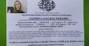 TUGA U BIH: Preminula Jasmina Neradin u 19. godini životaNa Bolji svijet je preselila Jasmina Neradin u 19. godini života. Dženaza…27.08. u 06:50 / BiH, Vijesti TUGA U BIH: Preminula Jasmina Neradin u 19. godini života27.08. u 06:50 / BiH, Vijesti