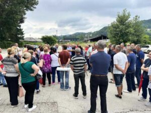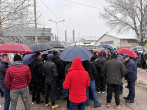Radnici "Krivaje Mobel" okupili su se pred kapijom preduzeća, tražeći uvezivanje staža…