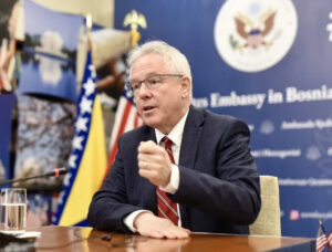 Murphy o ukidanju sankcija: Nisu naivni ljudi koji su sklopili te dogovore, bilo bi nerazumno da Dodik prevari TrumpaPosljednji ambasador Sjedinjenih Američkih Država u Bosni i Hercegovini, Michael Murphy, govorio…04.11. u 08:32 / BiH, VijestiMurphy: Trump ne voli biti prevaren, Dodikov dogovor može propastiPosljednji ambasador Sjedinjenih Američkih Država u Bosni i Hercegovini Michael Murphy u…04.11. u 00:35 / BiH, VijestiBećirović: Važnost kontinuiteta dvostranačke podrške SAD-aČlan Predsjedništva BiH dr. Denis Bećirović razgovarao je s ambasadorom Sjedinjenih Američkih…10.01. u 12:18 / BiH, VijestiMurphy oštro: Čović traži kompaniju za ličnu korist, da nagradi prijateljeU ekskluzivnom intervjuu za N1 televiziju, ambasador Michael Murphy, ključna figura međunarodne…12.12. u 22:31 / BiH, VijestiHDZ preko američkog think tanka napao Murphyja: Želi da se kršćani povinuju muslimanimaU pismu se tvrdi da Murphy samo nekoliko sedmica prije nego Donald…11.12. u 10:03 / BiH, VijestiMarfi: Rusija prijeti i ne želi nezavisnu BiHAmbasador Sjedinjenih Američkih Država u Bosni i Hercegovini Majkl Marfi (Michael Murphy)…07.12. u 00:05 / BiH, VijestiMurphy sastankom sa federalnim parlamentarcima u vezi južne plinske interekonekcije pokušava zaobići HDZ kojeg je učinio nezaobilaznimAmerički ambasador Michael Murphy danas će zajedno sa pomoćnikom državnog sekretara SAD-a…04.12. u 11:29 / BiH, VijestiDanas je Dan državnosti, a ne “dan republike”: Ono što je držao HV(O) je hrvatsko. Ono što je držala Vojska RS je srpsko. Ono što je držala Armija RBiH je svih zajedno!Trojka je, konačno, proradila. Naročito Gegićeva i Lazićeva. Susjedima nije pomogao ni…25.11. u 14:45 / BiH, VijestiMurphy: RS nema pravo na otcjepljenje, svako djelovanje u tom smjeru značilo bi njen krajRetorika o secesiji Milorada Dodika je opasna stvar za Bosnu i Hercegovinu…22.11. u 23:59 / BiH, VijestiMurphy: Bakir Izetbegović je izdao SDAAmerički ambasador u BiH Michael Murphy u velikom intervjuu za Oslobođenje je…09.11. u 16:33 / BiH, Vijesti Murphy o ukidanju sankcija: Nisu naivni ljudi koji su sklopili te dogovore, bilo bi nerazumno da Dodik prevari Trumpa04.11. u 08:32 / BiH, VijestiMurphy: Trump ne voli biti prevaren, Dodikov dogovor može propasti04.11. u 00:35 / BiH, VijestiBećirović: Važnost kontinuiteta dvostranačke podrške SAD-a10.01. u 12:18 / BiH, VijestiMurphy oštro: Čović traži kompaniju za ličnu korist, da nagradi prijatelje12.12. u 22:31 / BiH, VijestiHDZ preko američkog think tanka napao Murphyja: Želi da se kršćani povinuju muslimanima11.12. u 10:03 / BiH, VijestiMarfi: Rusija prijeti i ne želi nezavisnu BiH07.12. u 00:05 / BiH, VijestiMurphy sastankom sa federalnim parlamentarcima u vezi južne plinske interekonekcije pokušava zaobići HDZ kojeg je učinio nezaobilaznim04.12. u 11:29 / BiH, VijestiDanas je Dan državnosti, a ne “dan republike”: Ono što je držao HV(O) je hrvatsko. Ono što je držala Vojska RS je srpsko. Ono što je držala Armija RBiH je svih zajedno!25.11. u 14:45 / BiH, VijestiMurphy: RS nema pravo na otcjepljenje, svako djelovanje u tom smjeru značilo bi njen kraj22.11. u 23:59 / BiH, VijestiMurphy: Bakir Izetbegović je izdao SDA09.11. u 16:33 / BiH, Vijesti