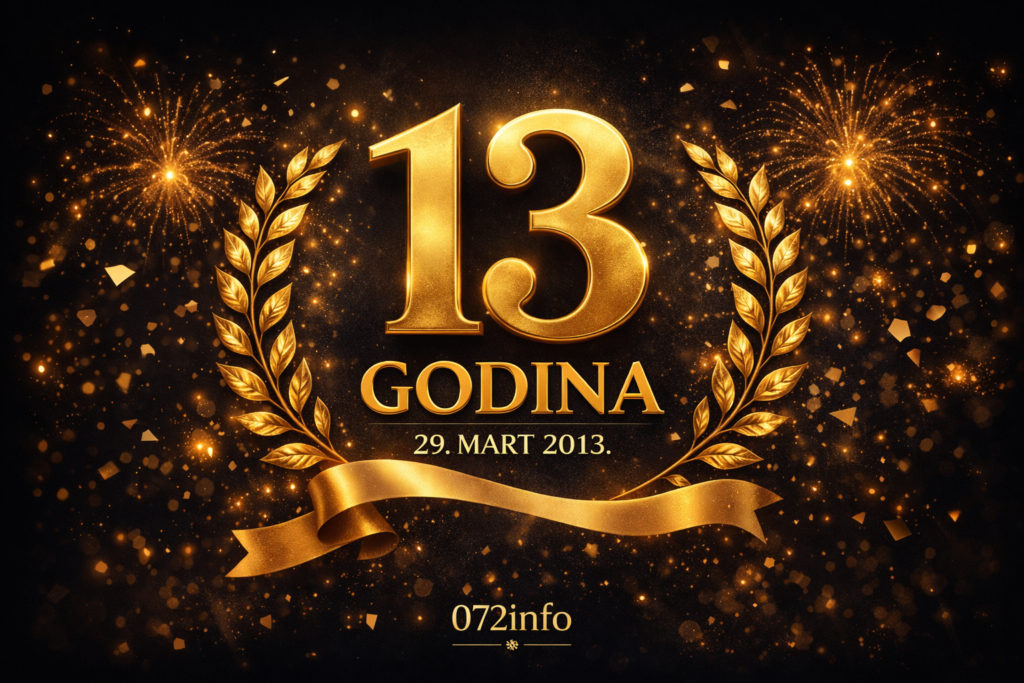13 godina uz vas – 072info nastavlja još jačePortal 072info danas obilježava 13 godina postojanja i kontinuiranog rada. Od svog…29.03. u 00:00 / BiH, Vijesti072info bilježi rekordne rezultate: Više od 48 miliona ljudi dosegnuto na društvenim mrežama u mjesec dana!Portal 072info nastavlja svoj impresivan rast i iz mjeseca u mjesec potvrđuje…23.10. u 09:02 / BiH, VijestiČitaniji nego ikad: 072info dosegao 8.551.552 pregleda u sedam dana!Portal 072info iz dana u dan potvrđuje status najčitanijeg i najpraćenijeg portala…22.08. u 08:35 / BiH, VijestiZašto se oglašavati na 072info? Jer brojke ne lažu. A ni rezultati.072info nije samo najčitaniji portal u Zeničko-dobojskom i Srednjobosanskom kantonu – mi…21.06. u 17:51 / BiH, Oglasi i konkursi, Promo, Vijesti11 GODINA SA VAMA: Novi dizajn 072info za još ugodnije čitanje vašeg omiljenog štiva! Portal 072info je pravo osvježenje u svijetu internet medija, koji je uz…29.03. u 10:36 / BiH, VijestiSLAVIMO 11 GODINA 072INFO: Nova sezona “072PODCASTA” i redizajn portalaU povodu 11 godina otkako je portal 072info vaše omiljeno štivo u…23.03. u 21:35 / BiH, VijestiBROJKE NEUMOLJIVE: 072info na FB prati preko 203.000 ljudi, ubjedljivo najčitaniji i najutjecajniji medij u ZDK, SBK i šire!Portal 072info svakodnevno bilježi isključivo porast čitatelja, što dokazuju relevantne statistike Google…17.03. u 20:50 / BiH, Izdvojeno, VijestiSTATISTIKE NEUMOLJIVE: 072info na Facebooku prati preko 200.000 ljudi, ostajemo najčitaniji i najutjecajniji medij u ZDK, SBK i šire!Portal 072info svakodnevno bilježi isključivo porast čitatelja, što dokazuju relevantne statistike Google…20.01. u 17:06 / BiH, VijestiMILIONSKE BROJKE: 072info čvrsto stoji na liderskoj poziciji među internet portalima u ZDK, SBK i šire!Portal 072info od svog osnivanja prati isključivo porast broja čitatelja, a koji…14.08. u 15:05 / PromoNEOBORIVE MILIONSKE BROJKE: 072info lider među internet portalima u ZDK, SBK i šire! Portal 072info od svog osnivanja prati isključivo porast broja čitatelja, a koji…03.07. u 17:25 / BiH, Vijesti 13 godina uz vas – 072info nastavlja još jače29.03. u 00:00 / BiH, Vijesti072info bilježi rekordne rezultate: Više od 48 miliona ljudi dosegnuto na društvenim mrežama u mjesec dana!23.10. u 09:02 / BiH, VijestiČitaniji nego ikad: 072info dosegao 8.551.552 pregleda u sedam dana!22.08. u 08:35 / BiH, VijestiZašto se oglašavati na 072info? Jer brojke ne lažu. A ni rezultati.21.06. u 17:51 / BiH, Oglasi i konkursi, Promo, Vijesti11 GODINA SA VAMA: Novi dizajn 072info za još ugodnije čitanje vašeg omiljenog štiva! 29.03. u 10:36 / BiH, VijestiSLAVIMO 11 GODINA 072INFO: Nova sezona “072PODCASTA” i redizajn portala23.03. u 21:35 / BiH, VijestiBROJKE NEUMOLJIVE: 072info na FB prati preko 203.000 ljudi, ubjedljivo najčitaniji i najutjecajniji medij u ZDK, SBK i šire!17.03. u 20:50 / BiH, Izdvojeno, VijestiSTATISTIKE NEUMOLJIVE: 072info na Facebooku prati preko 200.000 ljudi, ostajemo najčitaniji i najutjecajniji medij u ZDK, SBK i šire!20.01. u 17:06 / BiH, VijestiMILIONSKE BROJKE: 072info čvrsto stoji na liderskoj poziciji među internet portalima u ZDK, SBK i šire!14.08. u 15:05 / PromoNEOBORIVE MILIONSKE BROJKE: 072info lider među internet portalima u ZDK, SBK i šire! 03.07. u 17:25 / BiH, Vijesti