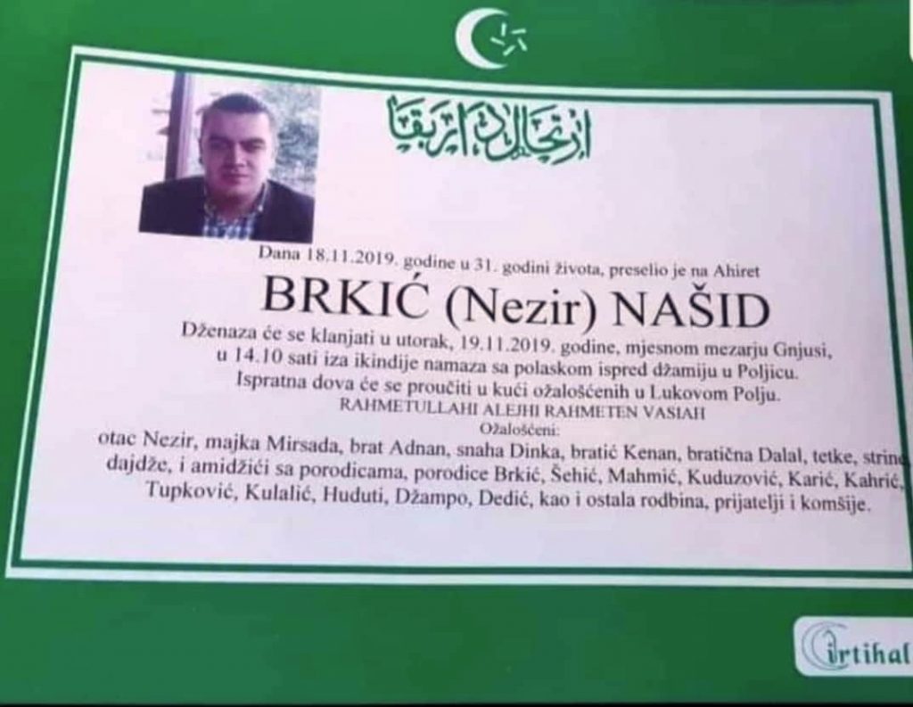 Pet godina tuge: Prijatelji se sjećaju Našida BrkićaProšlo je pet tužnih godina otkako je Zeničanin Našid Brkić, 18. novembra…18.11. u 22:33 / BiH, VijestiDvije tužne godine od smrti Zeničanina Našida BrkićaProšle su dvije tužne godine otkako je na bolji svijet, u svojoj…18.11. u 08:55 / BiH, VijestiSutra dženaza Našidu BrkićuZenica je od jutros obavijena tugom nakon što je obznanjena tužna vijest…18.11. u 15:32 / BiH, VijestiZenica obavijena tugom: Zauvijek nas je napustio Našid BrkićZenica je obavijena tugom nakon vijesti da nas je zauvijek napustio Našid…18.11. u 09:39 / BiH, Vijesti Pet godina tuge: Prijatelji se sjećaju Našida Brkića18.11. u 22:33 / BiH, VijestiDvije tužne godine od smrti Zeničanina Našida Brkića18.11. u 08:55 / BiH, VijestiSutra dženaza Našidu Brkiću18.11. u 15:32 / BiH, VijestiZenica obavijena tugom: Zauvijek nas je napustio Našid Brkić18.11. u 09:39 / BiH, Vijesti