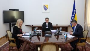 Cvijanović od sutra predsjedava Predsjedništvom BiHDužnost predsjedavajuće Predsjedništva Bosne i Hercegovine, po principu rotacije, od sutra, 16.…15.11. u 15:21 / BiH, VijestiČlanovi Predsjedništva BiH učestvovat će na UN Samitu svjetskih lidera o klimatskim akcijama u BakuuČlanovi Predsjedništva Bosne i Hercegovine učestvovat će na UN Samitu svjetskih lidera…10.11. u 12:52 / BiH, VijestiČlanovi Predsjedništva BiH izrazili saučešće povodom tragedije u Novom SaduSuosjećajući se sa tragedijom koja je zadesila Republiku Srbiju u nesreći koja…01.11. u 18:57 / BiH, VijestiDojava o bombi stigla u Predsjedništvo BiH: “Ovo je za vaš loš odnos prema Rusiji”Dojava o postavljenoj bombi danas je stigla u Predsjedništvo Bosne i Hercegovine.…25.09. u 19:53 / BiH, VijestiU Predsjedništvo BiH stigla dojava o postavljenoj bombi s porukom: “Ovo je zbog lošeg odnosa prema Ruskoj Federaciji”U Predsjedništvo Bosne i Hercegovine danas je stigla dojava o postavljenoj bombi,…25.09. u 19:29 / BiH, VijestiPredsjedništvo BiH potpisalo saglasnost, helikopteri će poslijepodne gasiti požar i na PonijerimaPredsjedništvo Bosne i Hercegovine potpisalo je jutros Helikopterskom servisu Oružanih snaga BiH…14.08. u 13:45 / BiH, VijestiPREDSJEDNIŠTVO PODIJELJENO | Bećirović i Cvijanović imaju isto mišljenje, Komšić protivPrethodno je nacrt budžeta usvojen u Vijeću ministara BiH, a iznosi 1.355.400.000…05.07. u 17:38 / BiH, VijestiČlanovi Predsjedništva BiH sutra sa LajčakomČlanovi Predsjedništva BiH primiće sutra specijalnog predstavnika ЕU za dijalog Beograda i…14.04. u 18:00 / BiH, VijestiEvo šta je sve usvojilo Predsjedništvo BiHDanas je održana 13. redovna sjednica Predsjedništva Bosne i Hercegovine na kojoj…04.04. u 21:30 / BiH, VijestiPrva reakcija iz Predsjedništva BiHDanašnja odluka Evropske komisije za otvaranje EU pregovora sa Bosnom i Hercegovinom…21.03. u 21:27 / BiH, Vijesti Cvijanović od sutra predsjedava Predsjedništvom BiH15.11. u 15:21 / BiH, VijestiČlanovi Predsjedništva BiH učestvovat će na UN Samitu svjetskih lidera o klimatskim akcijama u Bakuu10.11. u 12:52 / BiH, VijestiČlanovi Predsjedništva BiH izrazili saučešće povodom tragedije u Novom Sadu01.11. u 18:57 / BiH, VijestiDojava o bombi stigla u Predsjedništvo BiH: “Ovo je za vaš loš odnos prema Rusiji”25.09. u 19:53 / BiH, VijestiU Predsjedništvo BiH stigla dojava o postavljenoj bombi s porukom: “Ovo je zbog lošeg odnosa prema Ruskoj Federaciji”25.09. u 19:29 / BiH, VijestiPredsjedništvo BiH potpisalo saglasnost, helikopteri će poslijepodne gasiti požar i na Ponijerima14.08. u 13:45 / BiH, VijestiPREDSJEDNIŠTVO PODIJELJENO | Bećirović i Cvijanović imaju isto mišljenje, Komšić protiv05.07. u 17:38 / BiH, VijestiČlanovi Predsjedništva BiH sutra sa Lajčakom14.04. u 18:00 / BiH, VijestiEvo šta je sve usvojilo Predsjedništvo BiH04.04. u 21:30 / BiH, VijestiPrva reakcija iz Predsjedništva BiH21.03. u 21:27 / BiH, Vijesti