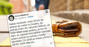 Pronašla novčanik pun novca, vlasnik je “šokirao” nagradom: Kako mu je ovo palo na pamet?Njen potez inspirisao je brojne korisnike mreže da u komentarima podijele vlastita…25.04. u 13:55 / Regija, VijestiNi poštenje se više ne cijeni: Zoran pronašao izgubljeni novčanik pa vozio 30 km do vlasnika, ovaj ga prijavio policijiDruštvenim mrežama širi se priča o jednom čovjeku koji je nakon lošeg…26.10. u 13:14 / Regija, VijestiPronašao više od tri hiljade KM i vratio vlasnici: Pretužno je bilo kada je saznao za šta je novac skupljalaHalil Smajić iz Sarajeva je prije nekoliko dana pronašao kovertu u kojoj…18.09. u 08:35 / BiH, Vijesti Pronašla novčanik pun novca, vlasnik je “šokirao” nagradom: Kako mu je ovo palo na pamet?25.04. u 13:55 / Regija, VijestiNi poštenje se više ne cijeni: Zoran pronašao izgubljeni novčanik pa vozio 30 km do vlasnika, ovaj ga prijavio policiji26.10. u 13:14 / Regija, VijestiPronašao više od tri hiljade KM i vratio vlasnici: Pretužno je bilo kada je saznao za šta je novac skupljala18.09. u 08:35 / BiH, Vijesti