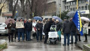 Hiljade građana širom Hrvatske marširale “protiv fašizma”: Zagreb u centru pažnjeAntifašistički protesti održani su danas u više hrvatskih gradova, uz zajednički slogan…30.11. u 15:05 / Regija, VijestiPenzioneri u Tuzli izašli na ulice: Traže povećanje penzija i usklađivanje sa evropskim standardimaU Tuzli je danas održan protestni skup koji je okupio veći broj…29.11. u 13:52 / BiH, VijestiVelid Spaho se obratio ispred Parlamenta: “Igramo najvažniju utakmicu, treba nam gol za opstanak BHRT-a”U uvodnom javljanju koje je otvorilo višesatni specijalni program “Ne gasite BHRT”,…27.11. u 13:25 / BiH, VijestiRTRS im duguje preko 100 miliona KM: BHRT najavio protest zbog urušavanja javnog servisaRadiotelevizija Bosne i Hercegovine (BHRT) najavila je da će 27. novembra uposlenici…25.11. u 18:21 / BiH, VijestiNajavljen štrajk tuzlanskih pravosudnih radnika: Plate nedovoljne za osnovne troškovePravosudni službenici u Tuzlanskom kantonu donijeli su odluku da početkom decembra stupe…24.11. u 16:22 / BiH, VijestiProtesti i u Kalesiji: Aldinini sugrađani izašli na ulice, traže sistemsku borbu protiv femicidaNakon Mostara i u Kalesiji je održan protest povodom brutalnog ubistva 32-godišnje…18.11. u 17:56 / BiH, VijestiNakon tragedije u Jablanici država šuti: Ko će odgovarati i kada?Bosna i Hercegovina je i sama nedavno doživjela jednu od najtragičnijih nesreća…16.11. u 13:31 / Crna HronikaPogoršalo se stanje Dijane Hrke: Majka poginulog mladića hospitalizovana nakon 14 dana štrajka glađuDijana Hrka, majka mladića koji je tragično stradao u padu nadstrešnice na…15.11. u 18:36 / Regija, VijestiViber poruka MUP-a Srbije žandarmeriji: Pažljivo s privatnim kontaktima sa studentimaPrema saznanjima lista Danas, sva četiri odreda Žandarmerije (Beograd, Niš, Novi Sad,…08.11. u 15:21 / Regija, VijestiTuzlaci danas izlaze na protest zbog tragedije u Domu penzionera i podvođenja maloljetnicaNeformalna grupa građana Tuzle najavila je za danas u 11:55 sati protestno…08.11. u 10:13 / BiH, Vijesti Hiljade građana širom Hrvatske marširale “protiv fašizma”: Zagreb u centru pažnje30.11. u 15:05 / Regija, VijestiPenzioneri u Tuzli izašli na ulice: Traže povećanje penzija i usklađivanje sa evropskim standardima29.11. u 13:52 / BiH, VijestiVelid Spaho se obratio ispred Parlamenta: “Igramo najvažniju utakmicu, treba nam gol za opstanak BHRT-a”27.11. u 13:25 / BiH, VijestiRTRS im duguje preko 100 miliona KM: BHRT najavio protest zbog urušavanja javnog servisa25.11. u 18:21 / BiH, VijestiNajavljen štrajk tuzlanskih pravosudnih radnika: Plate nedovoljne za osnovne troškove24.11. u 16:22 / BiH, VijestiProtesti i u Kalesiji: Aldinini sugrađani izašli na ulice, traže sistemsku borbu protiv femicida18.11. u 17:56 / BiH, VijestiNakon tragedije u Jablanici država šuti: Ko će odgovarati i kada?16.11. u 13:31 / Crna HronikaPogoršalo se stanje Dijane Hrke: Majka poginulog mladića hospitalizovana nakon 14 dana štrajka glađu15.11. u 18:36 / Regija, VijestiViber poruka MUP-a Srbije žandarmeriji: Pažljivo s privatnim kontaktima sa studentima08.11. u 15:21 / Regija, VijestiTuzlaci danas izlaze na protest zbog tragedije u Domu penzionera i podvođenja maloljetnica08.11. u 10:13 / BiH, Vijesti
