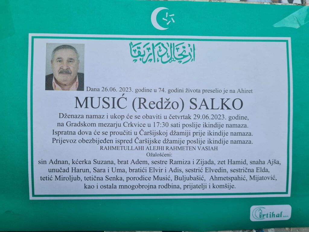 Salko Musić iz Kaknja živi u šupi i ima primanja od 150 KMŽive u šupi, pod svijećom, bez vode, struje, bez igdje ičega ali…03.12. u 18:40 / BiH, VijestiNapustio nas je veliki borac za prava Roma u Zenici: U četvrtak dženaza Salki MusićuZenica tuguje nakon vijesti da ih je zauvijek napustio Salko Musić, nekadašnji…27.06. u 21:15 / BiH, VijestiZenica tuguje: Zauvijek nas je napustio Salko Musić, nekadašnji vijećnik u GVZZenica tuguje nakon vijesti da ih je zauvijek napustio Salko Musić, nekadašnji…27.06. u 13:13 / BiH, Vijesti Salko Musić iz Kaknja živi u šupi i ima primanja od 150 KM03.12. u 18:40 / BiH, VijestiNapustio nas je veliki borac za prava Roma u Zenici: U četvrtak dženaza Salki Musiću27.06. u 21:15 / BiH, VijestiZenica tuguje: Zauvijek nas je napustio Salko Musić, nekadašnji vijećnik u GVZ27.06. u 13:13 / BiH, Vijesti