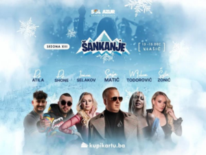 Šankanje 2025 obara sve rekorde: Rasprodan smještaj, posljednje ulaznice u prodaji!Ovogodišnje Šankanje 2025 na Vlašiću, najveći zimski muzički događaj u regionu, najavljuje…28.11. u 11:11 / PromoSol Azur Arena spremna za Šankanje, saniran požar na platouPovodom sinoćnjeg požara na platou hotela Babanovac, obavještavamo sve posjetitelje i učesnike…12.12. u 16:47 / BiH, VijestiVažne napomene za posjetioce Šankanja XIII: Organizatori objavili detalje ulaska u Sol Azur ArenuZbog velikog broja posjetilaca na ovogodišnjem Šankanju XIII, organizatori su objavili važne…11.12. u 21:47 / BiH, VijestiVlašić spreman za spektakl: Završena online prodaja ulaznica za Šankanje XIIIPripreme za Šankanje XIII ulaze u završnu fazu, a iz agencije Sol…09.12. u 19:39 / BiH, VijestiSOL AZUR: Dođite i doživite zimu na potpuno nov način! Šankanje XIII obećava vrhunsku zabavu, nevjerovatnu atmosferu i nezaboravne trenutke!Šankanje, jedan od najprepoznatljivijih zimskih festivala na našim prostorima, ove godine ulazi…04.12. u 07:53 / BiH, VijestiXIII ŠANKANJE NA VLAŠIĆU: Nastupaju Matić, Todorović, Selakov, Zonić, DJ Shone i DJ AtilaVlašić, Bosna i Hercegovina, 13.-15. decembar 2024 - Planina Vlašić postaje nezaobilazna…28.10. u 19:57 / PromoOdbrojavaju se sati do početka Šankanja na Vlašiću: Večeras koncert Bešlića, sutra nastupa Lepa Brena Odbrojavaju se sati do najvećeg događaja u regionu - “Šankanja”, kojeg tradicionalno…15.12. u 11:55 / Muzika/TV, ZabavaVlašić za vikend centar regiona: Popularne regionalne muzičke zvijezde na “Šankanju“Zimska turistička sezona 2022/2023 na području Srednjobosanskog kantona u organizaciji Turističke zajednice…14.12. u 11:30 / BiH, VijestiŠANKANJE: Vlašić i ove godine domaćin najvećeg zimskog festivala u BiH, nastupaju najpoznatije muzičke zvijezdeZimska turistička sezona na Vlašiću bit će zvanično otvorena u petak, 16.…15.11. u 11:20 / PromoZAVRŠENO ŠANKANJE NA VLAŠIĆU: Posjetioci oduševljeni nastupima Matića, Pavlović, Ćurić, Bekvalac (FOTO)Na bosanskohercegovačkoj ljepotici Vlašić završen je najveći zimski festival u regionu kojeg…12.12. u 11:35 / Muzika/TV, Zabava Šankanje 2025 obara sve rekorde: Rasprodan smještaj, posljednje ulaznice u prodaji!28.11. u 11:11 / PromoSol Azur Arena spremna za Šankanje, saniran požar na platou12.12. u 16:47 / BiH, VijestiVažne napomene za posjetioce Šankanja XIII: Organizatori objavili detalje ulaska u Sol Azur Arenu11.12. u 21:47 / BiH, VijestiVlašić spreman za spektakl: Završena online prodaja ulaznica za Šankanje XIII09.12. u 19:39 / BiH, VijestiSOL AZUR: Dođite i doživite zimu na potpuno nov način! Šankanje XIII obećava vrhunsku zabavu, nevjerovatnu atmosferu i nezaboravne trenutke!04.12. u 07:53 / BiH, VijestiXIII ŠANKANJE NA VLAŠIĆU: Nastupaju Matić, Todorović, Selakov, Zonić, DJ Shone i DJ Atila28.10. u 19:57 / PromoOdbrojavaju se sati do početka Šankanja na Vlašiću: Večeras koncert Bešlića, sutra nastupa Lepa Brena 15.12. u 11:55 / Muzika/TV, ZabavaVlašić za vikend centar regiona: Popularne regionalne muzičke zvijezde na “Šankanju“14.12. u 11:30 / BiH, VijestiŠANKANJE: Vlašić i ove godine domaćin najvećeg zimskog festivala u BiH, nastupaju najpoznatije muzičke zvijezde15.11. u 11:20 / PromoZAVRŠENO ŠANKANJE NA VLAŠIĆU: Posjetioci oduševljeni nastupima Matića, Pavlović, Ćurić, Bekvalac (FOTO)12.12. u 11:35 / Muzika/TV, Zabava