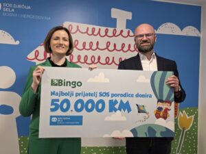 Sarajevo, 15. april 2025. – Kompanija Bingo i organizacija SOS Dječija sela u BiH danas su svečano ozvaničili nastavakdugogodišnjeg partnerstva uručenjem donatorskog čeka u iznosuod 44.000 KM, kojim Bingo i ove godine pokriva godišnjetroškove života porodice SOS mame Amire. Partnerstvo koje traje već 12 godina pokazuje snagu iskrene idugoročne posvećenosti djeci bez roditeljskog staranja. KompanijaBingo je mnogo više od donatora – kroz sve ove godine postali sunajbolji prijatelj porodice mame Amire i važan dio SOS zajednice. Donacija obezbjeđuje sigurno i stabilno okruženje puno ljubavi, kao i pristup stručnim servisima ključnim za zdrav razvoj djece. Ceremonija uručenja održana je u SOS Dječijem selu Sarajevo, uzprisustvo predstavnika kompanije Bingo i SOS Dječijih sela u BiH, gdje je potpisan ugovor i simbolično uručen donatorski ček.…