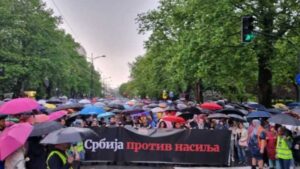 „Srbija protiv nasilja“ traži poništavanje izbora u Beogradu i poziva građane na protestNa osnovu 81 posto prebrojanih glasova u Beogradu, lista SNS ima 21…18.12. u 08:15 / Regija, VijestiOsmi protest “Srbija protiv nasilja”, studenti poručili “Računajte na nas”Širom Srbije održavaju se protesti "Srbija protiv nasilja". Protesti su tokom prethodnih…24.06. u 20:50 / Regija, VijestiPočeli masovni protesti u Srbiji: Desetine hiljada građana okupilo se u BeograduŠirom Srbije u 18:00 sati počeli su protesti pod sloganom "Srbija protiv…17.06. u 19:40 / Regija, VijestiŠesta sedmica protesta u Beogradu, studenti skandiraju: “Izađite napolje”Šesti po redu protest "Srbija protiv nasilja” počeo je skupom ispred Narodne…09.06. u 18:40 / Regija, VijestiŠesti protest pod nazivom “Srbija protiv nasilja” bit će održani danasŠesti protest pod nazivom „Srbija protiv nasilja“ bit će održan danas u…09.06. u 10:30 / Regija, Vijesti „Srbija protiv nasilja“ traži poništavanje izbora u Beogradu i poziva građane na protest18.12. u 08:15 / Regija, VijestiOsmi protest “Srbija protiv nasilja”, studenti poručili “Računajte na nas”24.06. u 20:50 / Regija, VijestiPočeli masovni protesti u Srbiji: Desetine hiljada građana okupilo se u Beogradu17.06. u 19:40 / Regija, VijestiŠesta sedmica protesta u Beogradu, studenti skandiraju: “Izađite napolje”09.06. u 18:40 / Regija, VijestiŠesti protest pod nazivom “Srbija protiv nasilja” bit će održani danas09.06. u 10:30 / Regija, Vijesti