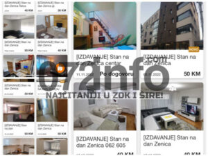 Inspektori u BiH “češljaju” stanove na danInspektori, kako Poreske uprave FBiH, tako i nadležnog Inspektorata RS, u prethodnom…22.07. u 12:59 / BiH, VijestiStan na dan je zabluda: Svi misle da se zgrću pare, a stanodavci u problemimaDnevni najam od 30 do 40 evra po noći djeluje primamljivo, naročito…30.05. u 09:46 / BiH, VijestiSve popularnija kupovina stanova za iznajmljivanje na danTržište nekretnina u našoj zemlji proteklih godina bilježi značajne promjene, a jedan…25.01. u 21:44 / BiH, VijestiPROBLEM | Raste broj “stanova na dan” na crnoIako zvanični podaci pokazuju pad broja registrovanih “stanova na dan” u Republici…15.12. u 21:52 / BiH, Vijesti“Stan na dan” donosi veću zaradu nego mjesečna kirijaSve je više ljudi koji se odlučuju da umjesto dugoročno stanove izdaju…22.07. u 19:30 / BiH, Vijesti“Stan na dan” i ostali smještaj: Inspektori zabranjuju rad i podnose prekršajne nalogeTokom 2023. godine u Kantonu Sarajevo zabilježen je najveći broj dolazaka i…07.04. u 11:40 / BiH, VijestiInspekcija kažnjavala: Zabrana pružanja usluga “stan na dan” za više od 40 licaRepublička tržišna inspekcija sprovela je u 2023. godini 250 kontrola pružanja usluga…02.01. u 15:10 / BiH, VijestiStan na dan: Evo koje su zakonske obaveze vlasnikaOdlazak na putovanje iziskuje detaljan odabir smještaja. Sve češći odabir, osim hotelskog…08.01. u 22:25 / BiH, Vijesti Inspektori u BiH “češljaju” stanove na dan22.07. u 12:59 / BiH, VijestiStan na dan je zabluda: Svi misle da se zgrću pare, a stanodavci u problemima30.05. u 09:46 / BiH, VijestiSve popularnija kupovina stanova za iznajmljivanje na dan25.01. u 21:44 / BiH, VijestiPROBLEM | Raste broj “stanova na dan” na crno15.12. u 21:52 / BiH, Vijesti“Stan na dan” donosi veću zaradu nego mjesečna kirija22.07. u 19:30 / BiH, Vijesti“Stan na dan” i ostali smještaj: Inspektori zabranjuju rad i podnose prekršajne naloge07.04. u 11:40 / BiH, VijestiInspekcija kažnjavala: Zabrana pružanja usluga “stan na dan” za više od 40 lica02.01. u 15:10 / BiH, VijestiStan na dan: Evo koje su zakonske obaveze vlasnika08.01. u 22:25 / BiH, Vijesti