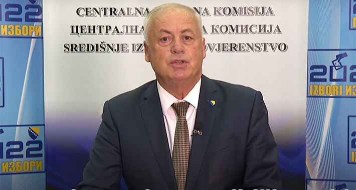 CIK održao novu sjednicu, odbačeni zahtjevi za poništavanjem izbora i novim prebrojavanjem glasovaCentralna izborna komisija Bosne i Hercegovine održala je večeras 68. hitnu sjednicu…22.10. u 20:15 / BiH, VijestiCentralna izborna komisija BiH izdala Naredbu Glavnom centru za brojanjeCentralna izborna komisija BiH na 67. sjednici danas je donijela novu Naredbu Glavnom…22.10. u 12:35 / BiH, VijestiArnautović: Možda poništimo izbore u RS-uCIK BiH apsolutno postupa u skladu sa Izbornim zakonom BiH, istakao je…18.10. u 22:22 / BiH, VijestiVanja Bjelica Prutina: “Ne želim da oponiram svom predsjedniku, ali mislim da je došlo do nejasnoća”Predsjednik CIK-a Suad Arnautović prije dva dana je izjavio da u Doboju…14.10. u 08:15 / BiH, VijestiArnautović: U Doboju sa 61 biračkog mjesta ne postoje vreće i pečati od neiskorištenih listićaPredsjednik Centralne izborne komisije (CIK) BiH Suad Arnautović je, zbog velikog interesa…12.10. u 17:10 / BiH, VijestiMože li elektronsko glasanje spriječiti izborne krađe u Bosni i Hercegovini?U analizi je i gruba procjena troškova kupovine uređaja za elektronsko glasanje…12.10. u 09:15 / BiH, VijestiPorazno priznanje ArnautovićaPredsjednik Centralne izborne komisije (CIK) Suad Arnautović na konferenciji za medije u…10.10. u 16:20 / BiH, VijestiArnautović optužio biračke odbore, CIK zbog njih bio spriječen prezentirati rezultateOpći izbori u BiH održani su 2. oktobra ove godine. Centralna izborna…07.10. u 11:55 / BiH, Vijesti“Zabrinjavajuće da smo imali kandidate sa 0 glasova, nisu glasali ni za sebe”Suad Arnautović, predsjednik Centralne izborne komisije Bosne i Hercegovine, Vanja Bjelica Prutina,…01.09. u 22:35 / BiH, VijestiApel predsjednika CIK-a: Vodite fer kampanju i ne koriste jezik mržnjeDrugog septembra službeno počinje izborna kampanja za Opće izbore 2022. godine. Predsjednik…01.09. u 13:10 / BiH, Vijesti CIK održao novu sjednicu, odbačeni zahtjevi za poništavanjem izbora i novim prebrojavanjem glasova22.10. u 20:15 / BiH, VijestiCentralna izborna komisija BiH izdala Naredbu Glavnom centru za brojanje22.10. u 12:35 / BiH, VijestiArnautović: Možda poništimo izbore u RS-u18.10. u 22:22 / BiH, VijestiVanja Bjelica Prutina: “Ne želim da oponiram svom predsjedniku, ali mislim da je došlo do nejasnoća”14.10. u 08:15 / BiH, VijestiArnautović: U Doboju sa 61 biračkog mjesta ne postoje vreće i pečati od neiskorištenih listića12.10. u 17:10 / BiH, VijestiMože li elektronsko glasanje spriječiti izborne krađe u Bosni i Hercegovini?12.10. u 09:15 / BiH, VijestiPorazno priznanje Arnautovića10.10. u 16:20 / BiH, VijestiArnautović optužio biračke odbore, CIK zbog njih bio spriječen prezentirati rezultate07.10. u 11:55 / BiH, Vijesti“Zabrinjavajuće da smo imali kandidate sa 0 glasova, nisu glasali ni za sebe”01.09. u 22:35 / BiH, VijestiApel predsjednika CIK-a: Vodite fer kampanju i ne koriste jezik mržnje01.09. u 13:10 / BiH, Vijesti