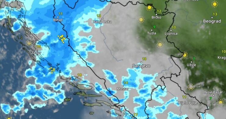 Stiže velika promjena vremena: Dva vala padavina pratit će naglo zahlađenjeTrenutno je potpuno vedro nad cijelom zemljom, ali još samo danas. Od…06.11. u 23:21 / BiH, VijestiPrognoza vremenaU petak 7.11.2025. u Bosni će biti dosta niske oblačnosti, prije podne…06.11. u 22:57 / BiH, VijestiVremenska prognozaSutra će u našoj zemlji preovladavati sunčano vrijeme. Po kotlinama Bosne i…05.11. u 23:48 / BiH, VijestiVremenska prognozaU našoj zemlji preovladavati sunčano vrijeme. Prije podne po kotlinama Bosne i…04.11. u 23:09 / BiH, VijestiVremenska prognozaU većem dijelu zemlje će preovladavati pretežno sunčano vrijeme. Prije podne dosta…04.11. u 00:23 / BiH, VijestiMeteorolozi objavili detaljnu prognozu za BiH do 18. novembra: I kiša i sunce i minusiIz Federalnog hidrometeorološkog zavoda objavili su danas srednjoročnu prognozu, za period od…03.11. u 16:11 / BiH, VijestiStižu kiša i snijeg, a onda se opet vraća sunce3. novembra, od jutarnjih sati premještanje hladne fronte i prolazna kiša posvuda…02.11. u 23:37 / BiH, VijestiVremenska prognozaU našoj zemlji preovladavati pretežno oblačno vrijeme sa kišom. Poslije podne prestanak…02.11. u 23:19 / BiH, VijestiDanas u BiH temperature i do 23°C: Pročitajte kakvo će nam vrijeme biti do četvrtkaJutros je u centralnim, sjevernim i zapadnim područjima Bosne umjereno do pretežno…02.11. u 09:27 / BiH, VijestiDo kada će trajati Miholjsko ljeto: Sunčano i narednih dana, evo kada se očekuju padavineU subotu u Bosni i Hercegovini će preovladavati pretežno sunčano vrijeme. Lokalno…01.11. u 00:48 / BiH, Vijesti Stiže velika promjena vremena: Dva vala padavina pratit će naglo zahlađenje06.11. u 23:21 / BiH, VijestiPrognoza vremena06.11. u 22:57 / BiH, VijestiVremenska prognoza05.11. u 23:48 / BiH, VijestiVremenska prognoza04.11. u 23:09 / BiH, VijestiVremenska prognoza04.11. u 00:23 / BiH, VijestiMeteorolozi objavili detaljnu prognozu za BiH do 18. novembra: I kiša i sunce i minusi03.11. u 16:11 / BiH, VijestiStižu kiša i snijeg, a onda se opet vraća sunce02.11. u 23:37 / BiH, VijestiVremenska prognoza02.11. u 23:19 / BiH, VijestiDanas u BiH temperature i do 23°C: Pročitajte kakvo će nam vrijeme biti do četvrtka02.11. u 09:27 / BiH, VijestiDo kada će trajati Miholjsko ljeto: Sunčano i narednih dana, evo kada se očekuju padavine01.11. u 00:48 / BiH, Vijesti