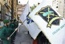 Preminuo Emin Švrakić, osnivač i komandant Zelenih beretkiU Sarajevu je danas preminuo Emin Švrakić, osnivač i komandant legendarnih Zelenih…03.08. u 11:49 / BiH, VijestiZELENE BERETKE | Švrakić: “Mi koji smo ratovali znamo kakve smo golgote prošli. Naš mir je skupo plaćen”Udruženje boraca “Zelene Beretke” uputilo je javni apel građanima i boračkim organizacijama…08.03. u 19:20 / BiH, VijestiSukob SDA i Zelenih Beretki: “Godinama ste nas špijunirali. Koliko ste nam samo prodali oružja, a ostali smo vam dužni za onih 850 koje smo vam oteli”OO SDA Stari Grad oglasila se danas povodom 100 dana mandata načelnika…28.02. u 18:40 / BiH, VijestiZelene Beretke odgovorile SDA stranci: “Mi smo odbranili državu, a vi je zaposjeli, pokrali i izdali”Općinska organizacija SDA Stari Grad komentarisala je prvih 100 dana rada načelnika…28.02. u 09:30 / BiH, VijestiNa entitetskim linijama postavljena obilježja “Zelenih beretki”Tokom današnjeg dana pripadnici “Zelenih beretki” postavljali su svoja obilježja širom Bosne…09.01. u 23:16 / BiH, VijestiZelene beretke u bivšoj Dobrovoljačkoj: Nećemo dozvoliti da nas izjednače sa agresoromU ulici Hamdije Kreševljakovića, nekadašnjoj Dobrovoljačkoj, okupili su se članovi "Zelenih beretki",…03.05. u 16:10 / BiH, VijestiZelene beretke o ratnom putu ministra Zukana Heleza: Vi koji pričate morate znati da je on naš pripadnik od 1991.Nakon što je Zukan Helez (SDP) imenovan i preuzeo dužnost ministra odbrane…26.01. u 22:12 / BiH, VijestiZelene beretke na međuentitetskoj liniji oko Sarajeva organizuju proteste 9. januaraUdruženje "Zelene beretke" poslali su zvaničan zahtjev zaustavljanja saobraćaja zbog protesta koji…05.01. u 14:25 / BiH, VijestiZelene beretke traže blokiranje ulica na linijama razdvajanja u SarajevuUdruženje Zelene Beretke uputilo je zahtjev za blokiranje ulica u Sarajevu kako…05.01. u 14:05 / BiH, VijestiPredsjednik “Zelenih beretki” zbog proslave 9. januara pozvao MUP KS da kontroliše sve ruske paravojne formacije i četničke organizacijePredstavnici boračkih udruženja i nevladinih organizacija Kantona Sarajevo okupili su se danas…04.01. u 15:00 / BiH, Vijesti Preminuo Emin Švrakić, osnivač i komandant Zelenih beretki03.08. u 11:49 / BiH, VijestiZELENE BERETKE | Švrakić: “Mi koji smo ratovali znamo kakve smo golgote prošli. Naš mir je skupo plaćen”08.03. u 19:20 / BiH, VijestiSukob SDA i Zelenih Beretki: “Godinama ste nas špijunirali. Koliko ste nam samo prodali oružja, a ostali smo vam dužni za onih 850 koje smo vam oteli”28.02. u 18:40 / BiH, VijestiZelene Beretke odgovorile SDA stranci: “Mi smo odbranili državu, a vi je zaposjeli, pokrali i izdali”28.02. u 09:30 / BiH, VijestiNa entitetskim linijama postavljena obilježja “Zelenih beretki”09.01. u 23:16 / BiH, VijestiZelene beretke u bivšoj Dobrovoljačkoj: Nećemo dozvoliti da nas izjednače sa agresorom03.05. u 16:10 / BiH, VijestiZelene beretke o ratnom putu ministra Zukana Heleza: Vi koji pričate morate znati da je on naš pripadnik od 1991.26.01. u 22:12 / BiH, VijestiZelene beretke na međuentitetskoj liniji oko Sarajeva organizuju proteste 9. januara05.01. u 14:25 / BiH, VijestiZelene beretke traže blokiranje ulica na linijama razdvajanja u Sarajevu05.01. u 14:05 / BiH, VijestiPredsjednik “Zelenih beretki” zbog proslave 9. januara pozvao MUP KS da kontroliše sve ruske paravojne formacije i četničke organizacije04.01. u 15:00 / BiH, Vijesti