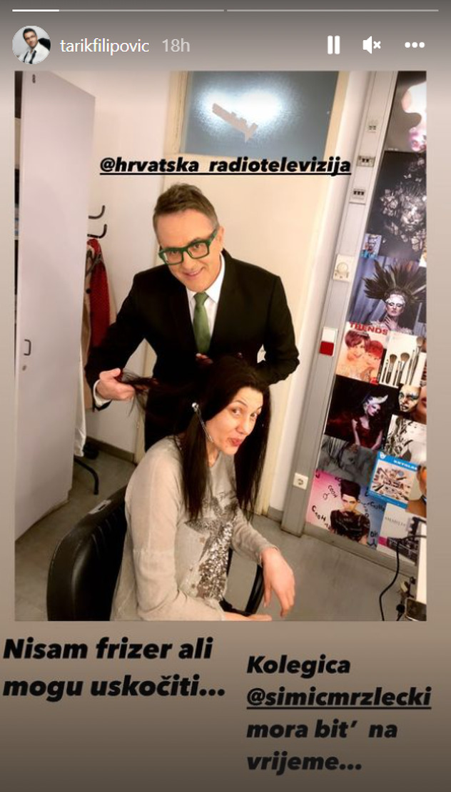 Tarik Filipović otkrio je na svom Instagram profilu da je pomogao voditeljici HRT-ovog Dnevnika napraviti frizuru prije nego je sjela pred kamere.