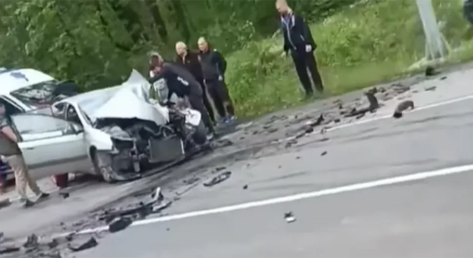 Automobil je prešao u lijevu saobraćajnu traku i direktno udario u autobus.