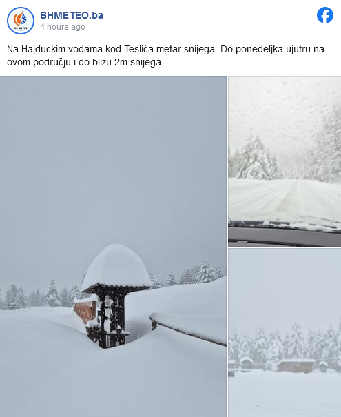 Prema informacijama iz BH Meteo, na terenu je već izmjeren metar snijega, a očekivanja za naredne dane su još izazovnija.
