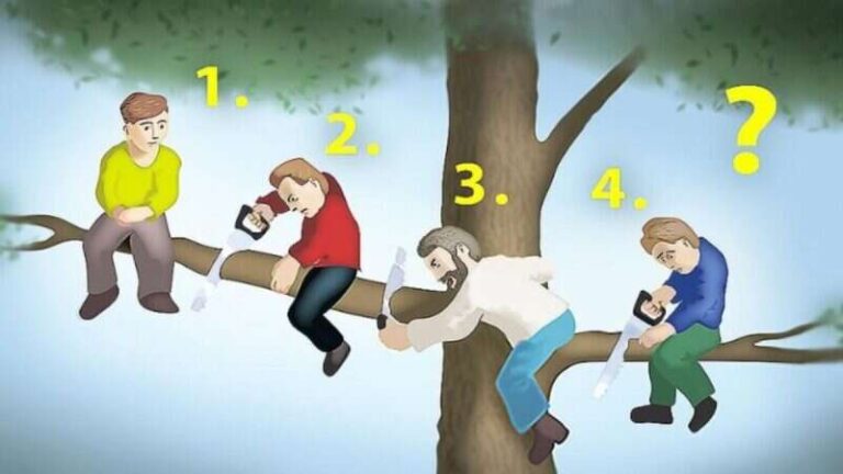 Najjednostavnija logika nam govori da je u ovoj situaciji nasigurnija osoba koja sjedi najbliže deblu. Naravno da je u prednosti u odnosu na one koji sjede daleko na granama. Po toj logici možemo zaključiti da je najmanje pametna osoba koja sjedi na najlošijoj poziciji. Iz takvog razmišljanja slijedi da su najgluplje osobe pod brojem 1 i 4. Pa ipak, to što osoba broj 4 izgleda kao da je primorana da si pili granu na kojoj sjedi – možda je sklona samoubijstvu – možemo zaključiti da je na neki način najmanje svjesna svoje loše pozicije i posljedica koje slijede. S druge strane, osoba 1 promatra mirno kako joj čak dvoje ljudi pili granu na kojoj sjedi kao da je posve nesvjesna onoga što slijedi – što nas dovodi do zaključka da je osoba 1 najgluplja.