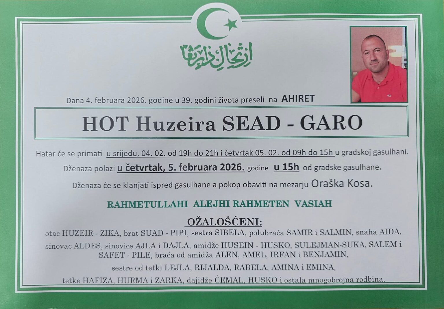 Bijelo Polje je zanijemjelo od tuge. U 39. godini života, 4. februara 2026. godine, na Ahiret je preselio Sead Garo Hot, čovjek čiji je prerani odlazak ostavio bolnu prazninu u srcima porodice, prijatelja, komšija i svih koji su ga poznavali.