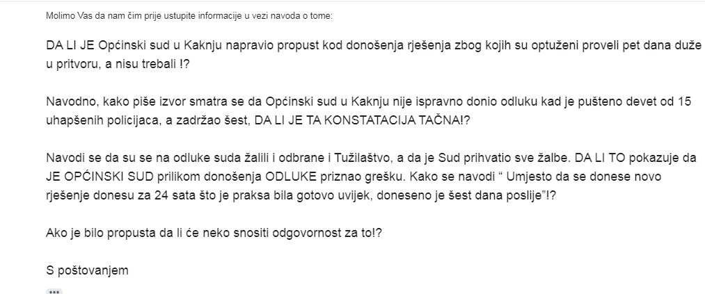U cilju objektivnog informisanja javnosti, naš upit s portala u vezi ovih navoda poslali smo na adresu KAKANJSKOG SUDA…