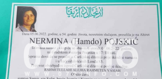 Javnost u našoj zemlji, ali i regionu, zgrožena je nakon vijesti da su u fotokopirnici u Zenici pronađena dva beživotna tijela, odnosno da je vlasnik fotokopirnice “No 8” ubio dugogodišnju radnicu, a potom oduzeo sebi život. Naime, vlasnik radnje Muhedin Begagić (63) je ubio dugogodišnju radnicu Nerminu Pojskić (54), a onda presudio i sebi iz … Nastavi čitati TUGA DO NEBA: Danas dženaza ubijenoj radnici fotokopirnice u Zenici