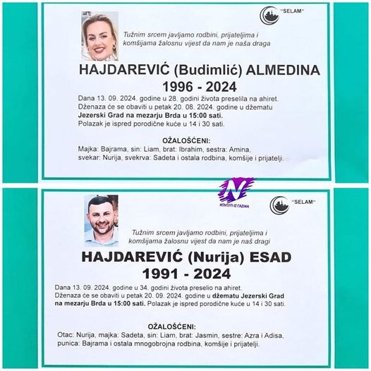 TUGA PREGOLEMA: Sutra će u mezare, jedno pored drugog, biti spušteni Almedina i Esad Hajderević: Dječak Liam ostao bez oba roditelja