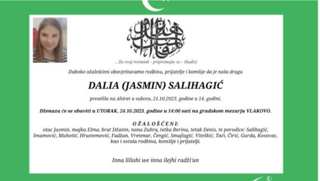 Na Bolji svijet je preselila DALIA (JASMIN) SALIHAGIĆ u 14. godini života.