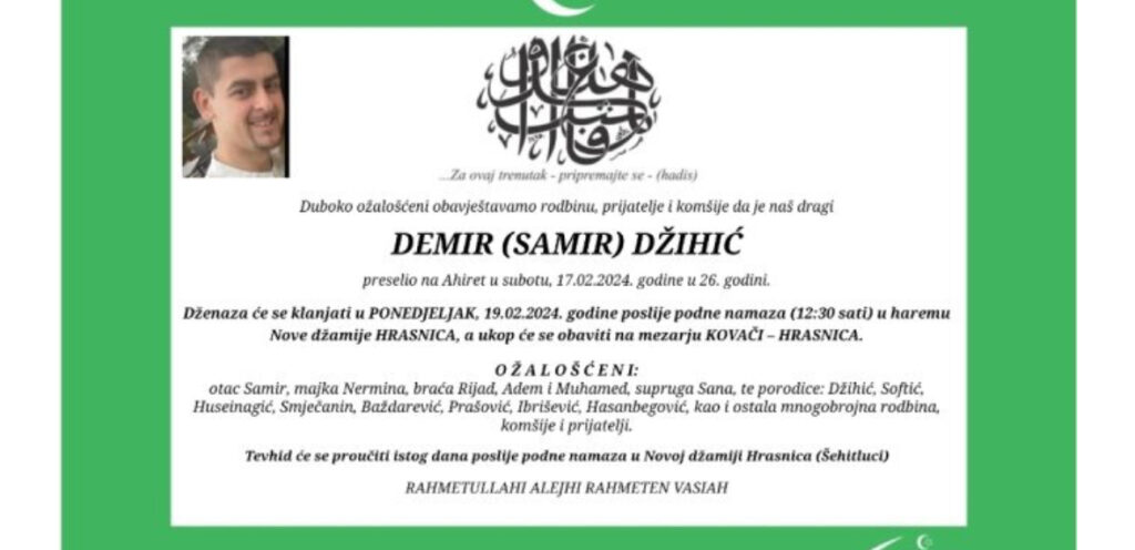 Demir Džihić preminuo je u subotu, 10.02.2024.