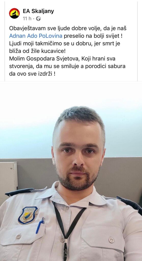 Obavještavamo sve ljude dobre volje, da je naš Adnan Ado Polovina preselio na bolji svijet, objavili su iz EA Skaljani.