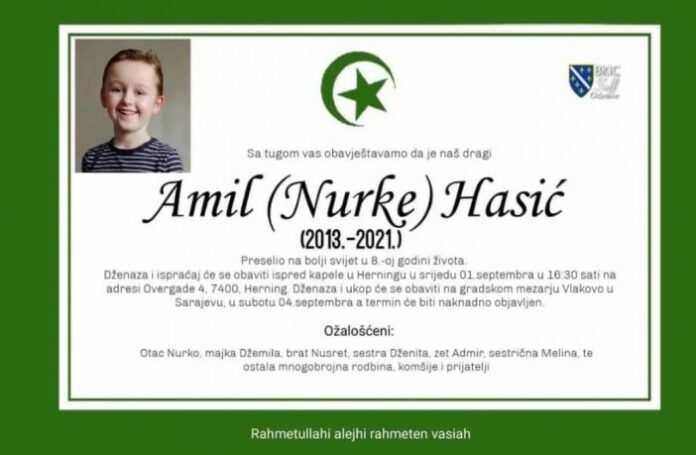 S tugom vas obavještavamo da je sin našeg Nurke Hasića Amil Allahovom odredbom napustio ovaj svijet i vratio se svome Gospodaru.