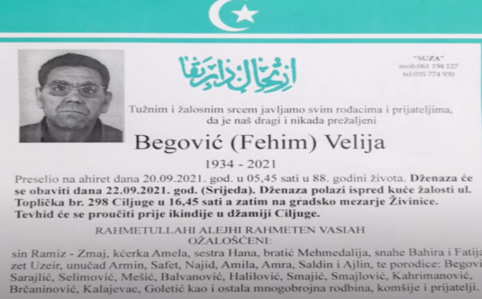 Velija Begović, otac Ramiza Zmaja preminuo je jutros u Živinicama. Ovu tužnu vijest objavio je njegov sin Ramiz Zmaj na svom YouTube kanalu.