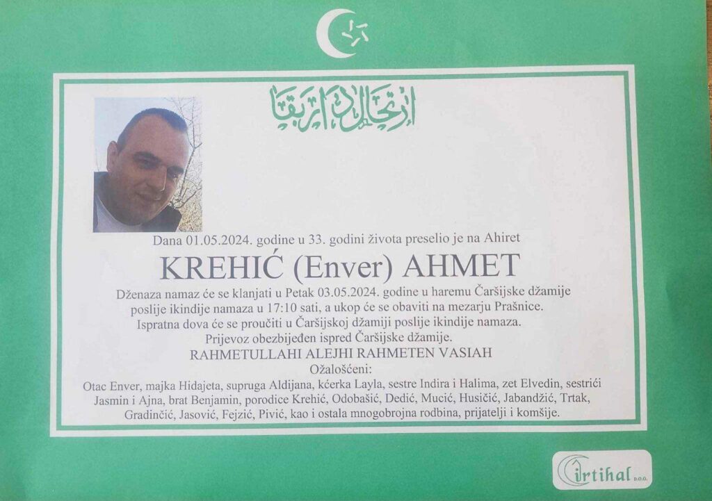 Ova vijest okovala je tugom sve one koji su poznavali ovog vedrog mladića, a brojni prijatelji na društvenim mrežama emotivnim porukama opraštaju se od preminulog Krehića.