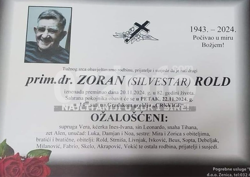 Preminuo je poznati primarijus doktor Zoran Rold, koji je svojim radom, znanjem i nesebičnom posvećenošću pomogao brojnim sugrađanima tokom svoje karijere.