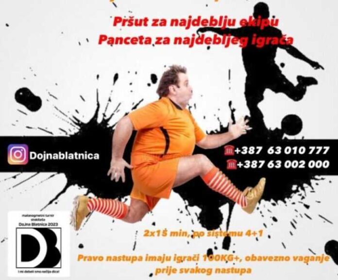 U Donjoj Blatnici, općina Čitluk, bit će održan turnir stokilaša pod geslom “I mi debeli smo nečija dica”.