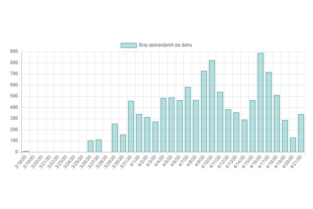 U posljednja 24 sata od posljedica koronavirusa preminula je 21 osoba, a 340 se oporavilo. Austrijski Kurier piše o mogućnosti da je broj umrlih veći od zvaničnog broja.