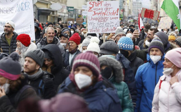 U Gracu, Klagenfurtu i Sankt Peltenu jučer su održani protesti protiv epidemioloških mjera i namjere austrijske Vlade da uvede obaveznu vakcinaciju.