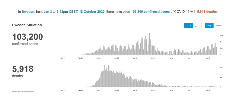 U Švedskoj, zemlji koja je držala otvorenim većinu škola, restorana i kompanija, u četvrtak je zabilježeno 1.075 novih slučajeva zaraze koronavirusom, a u subotu 596. Budući da se bilježi postupni rast oboljelih od početka septembra ruše se nade u takozvani “imunitet krda”.