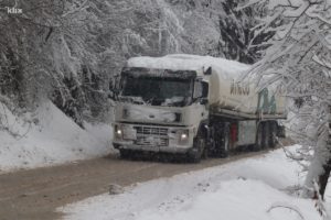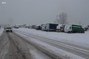 Brojni kamioni nalaze se na ulazu u Zenicu u blizini Blatuše parkirani na parkingu jer zbog nedovoljno očišćenih puteva nisu bili u stanju nastaviti svoje putovanje.