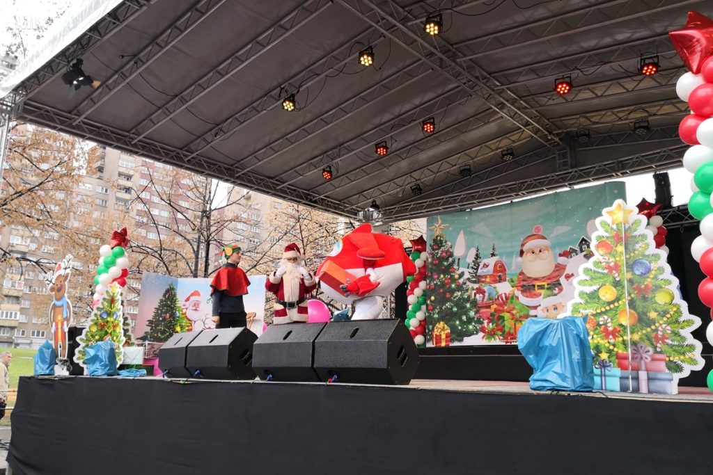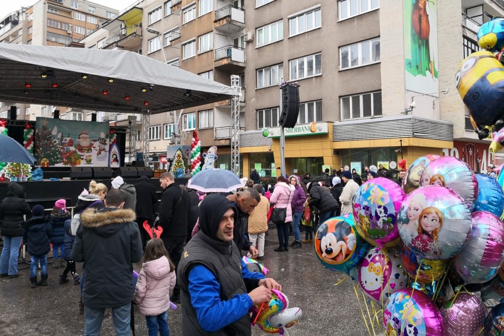 Novogodišnji program na Trgu Alije Izetbegovića počeo je danas u 12 sati predstavom za djecu koju je za najmlađe Zeničane priredio Tropic team te podjelom prigodnih poklona koje su obezbijedili sponzori i partneri novogodišnjeg programa u Zenici.