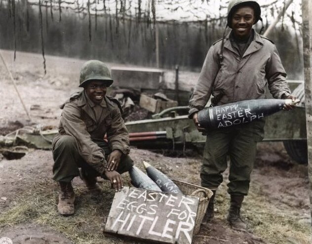 Na njoj se mogu vidjeti američki vojnici koji su na artiljerijskim granatama, koje će biti ispaljene na Berlin, napisali poruku “Hitlerova uskršnja jaja”.