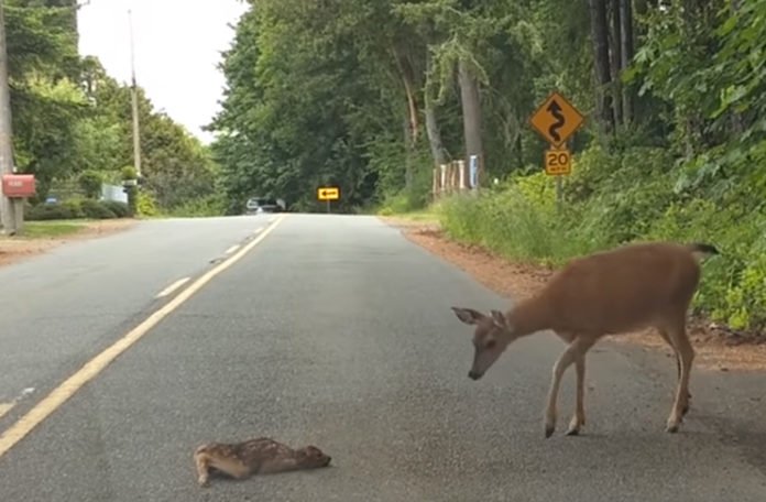 Jessie Larson vozila se cestom u Washingtonu kada je naišla na lane koje je uplašeno ležalo nasred puta.