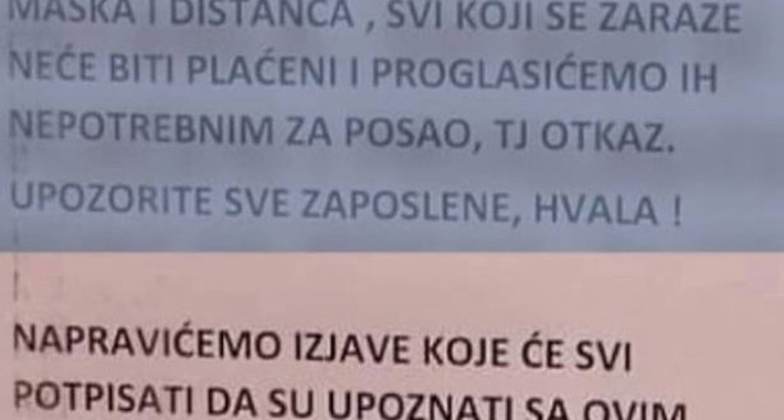 U jednom banjalučkom marketu osvanulo je prijeteće upozorenje radnicima – ko se zarazi koronom dobiće otkaz.