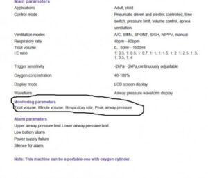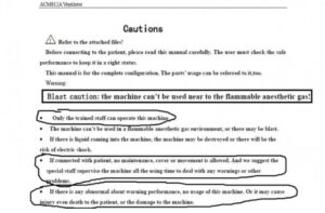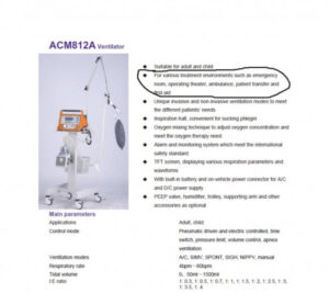 U jednom dijelu se kaže da u slučaju bilo kakvih abnormalnosti ovi respiratori mogu izazvati povrede ili čak smrt pacijenta.