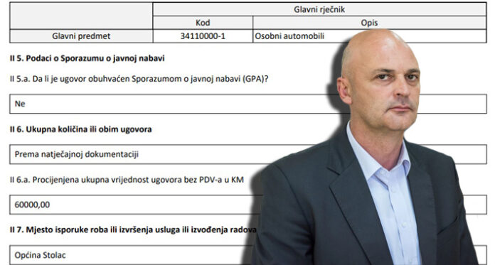 Općina Stolac na čijem čelu je načelnik Stjepan Bošković raspisala je tender za nabavku putničkog vozila u vrijednosti od 60.000 KM. Uz pripadajući PDV iznos limuzine koja se nabavlja metodom otvorenog postupka je 70.200 KM.
