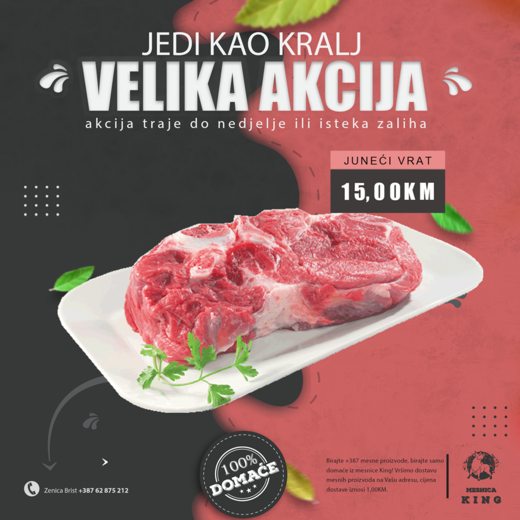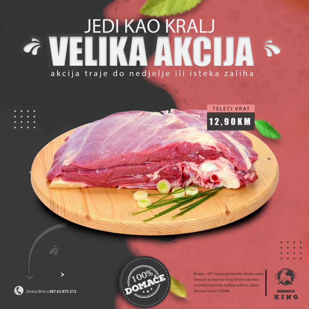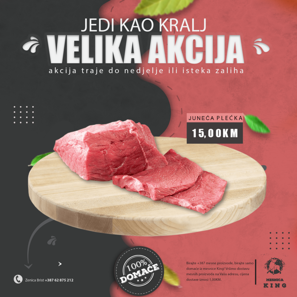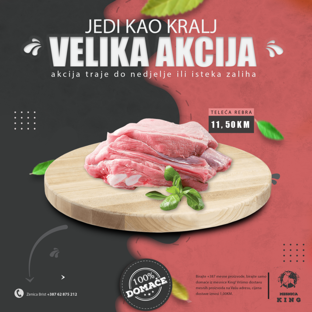 TOPIMO CIJENE! U mjesec august ulazimo sa velikom sedmičnom akcijom u mesnici King. Nudimo vam kvalitetno i domaće meso po odličnim acijskim cijenama.