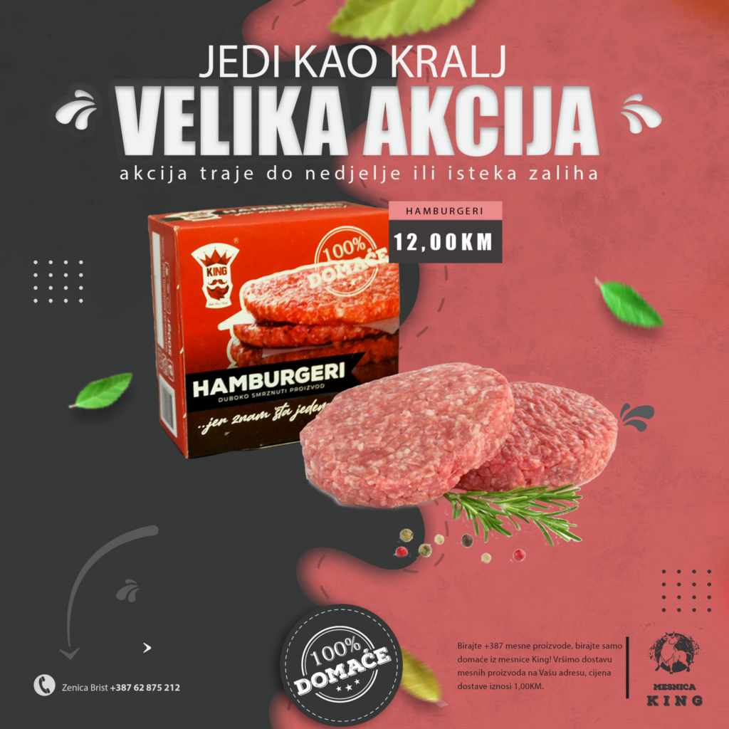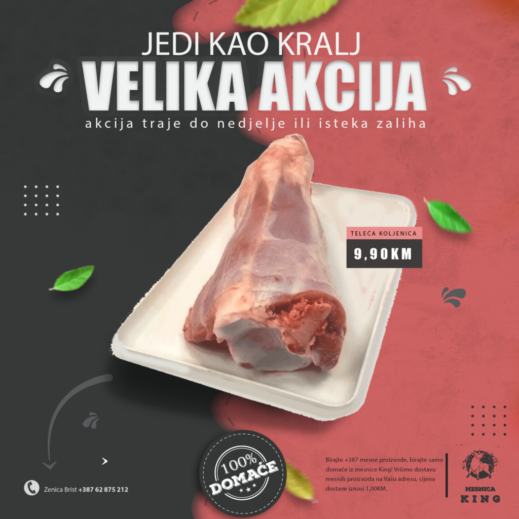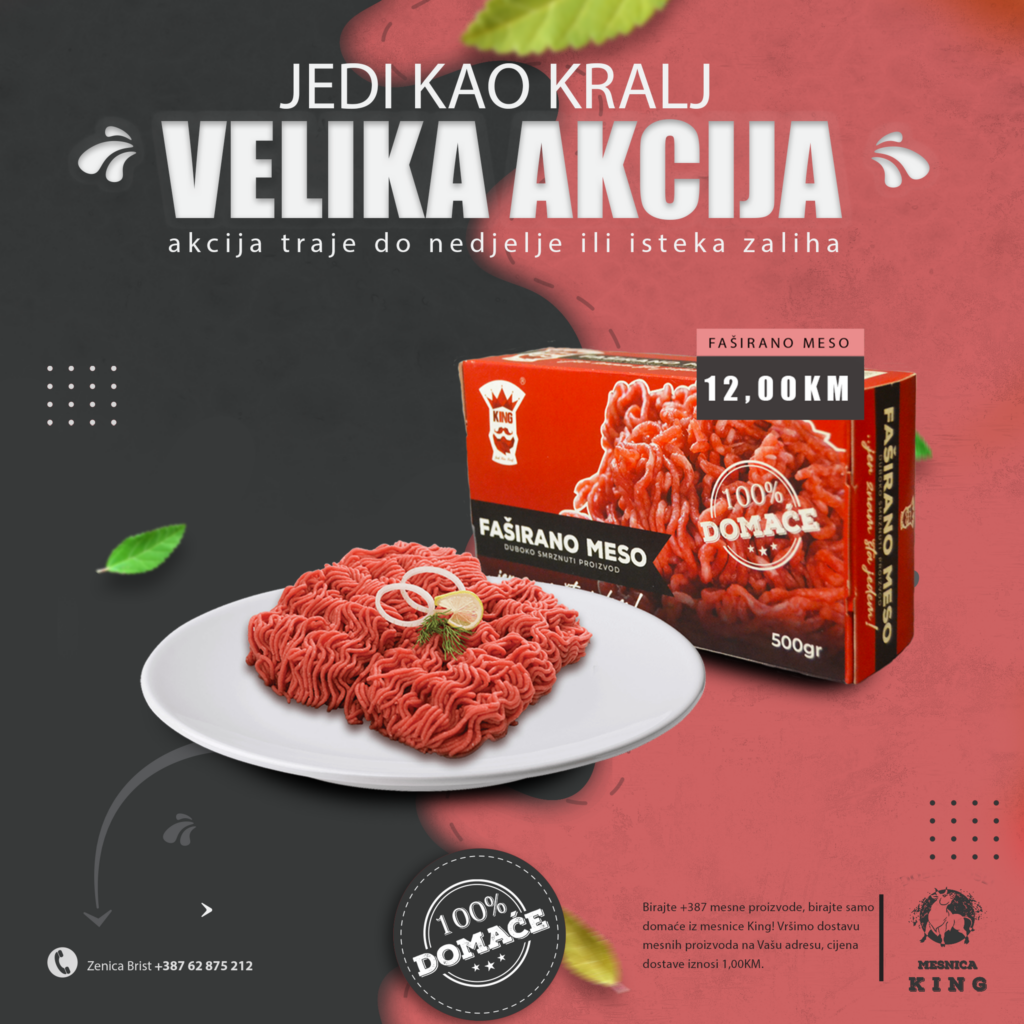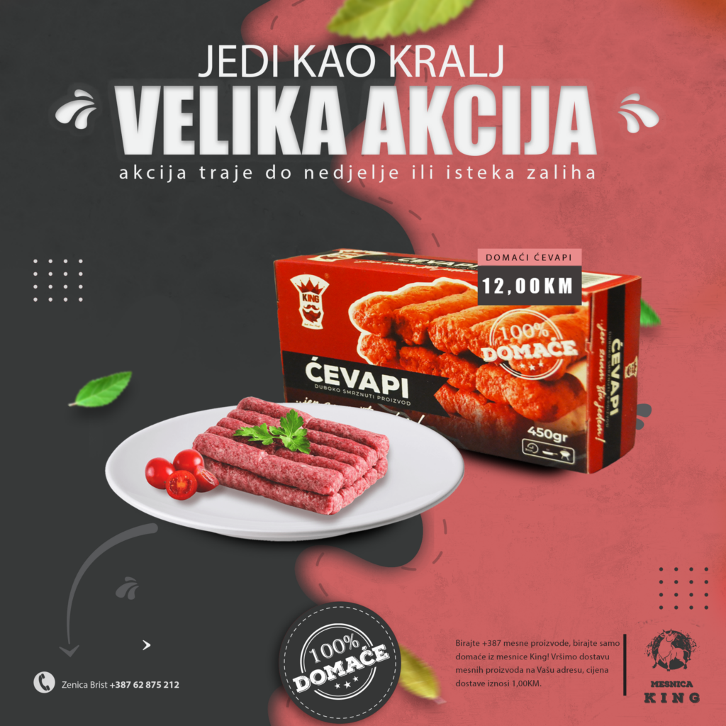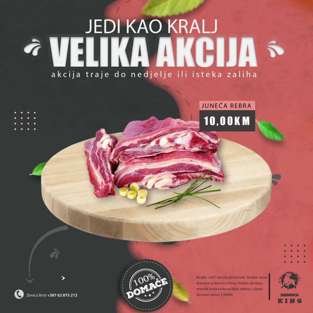 TOPIMO CIJENE! U mjesec august ulazimo sa velikom sedmičnom akcijom u mesnici King. Nudimo vam kvalitetno i domaće meso po odličnim acijskim cijenama.