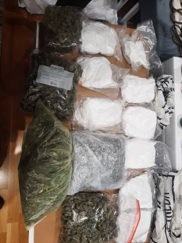 - više PVC pakovanja sa suhom zeljastom materijom koja svojim karakteristikama asocira na opojnu drogu marihuanu, ukupne mase četiri kilograma;