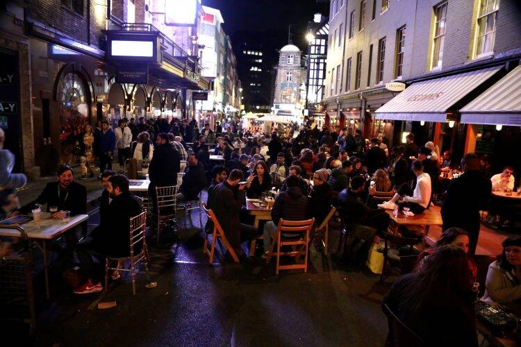 Istog dana u londonskom kvartu Sohu, veliki broj ljudi posjetio je pabove i barove, proslavljajući dugo očekivano popuštanje mjera.