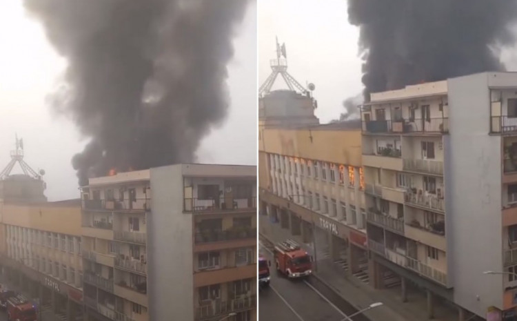 Gust crni dim i plamen vidljivi su iz velikog dijela grada.
