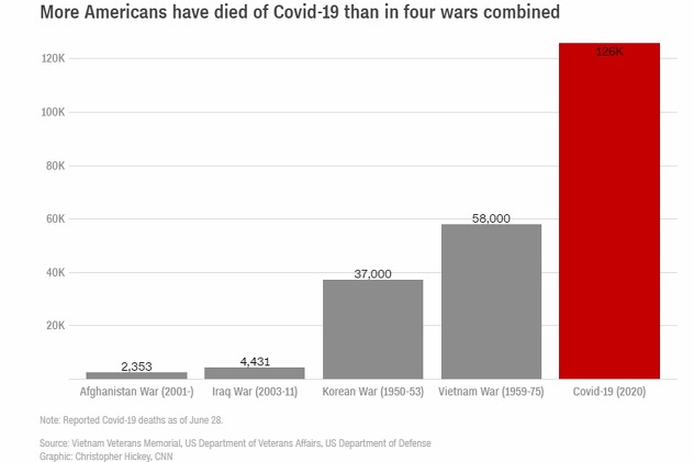 CNN je predstavio analizu koja pokazuje da je više Amerikanaca preminulo od koronavirusa u SAD-u nego u ratovima u Vijetnamu, Koreji, Iraku i Afganistanu.